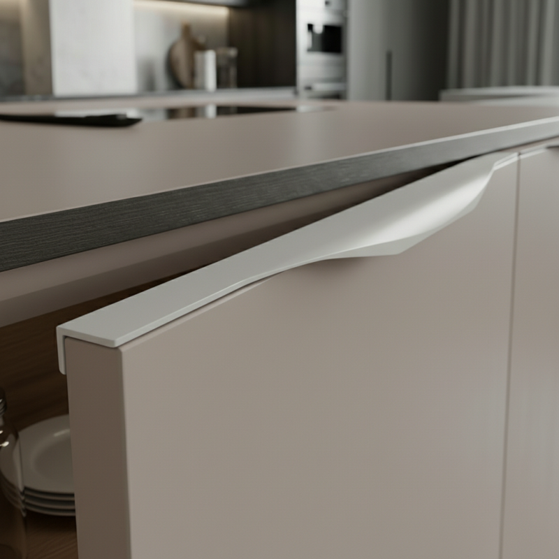 Elegantná úchytka VULCANO v prevedení biela matná je ideálnym riešením pre svetlé, moderné aj škandinávske interiéry. Montuje sa na hornú hranu dvierok, čím zachováva čistý a minimalistický vzhľad nábytku bez narušenia čelnej plochy.