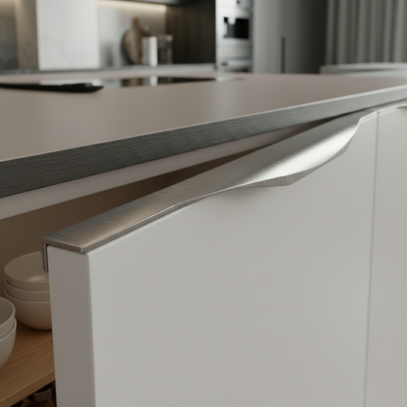 Moderná úchytka VULCANO v prevedení inox je ideálnou voľbou pre interiéry, kde sa kladie dôraz na čistý dizajn a funkčnosť. Montuje sa na hornú hranu dvierok, čím zachováva minimalistický vzhľad nábytku bez narušenia čelnej plochy.