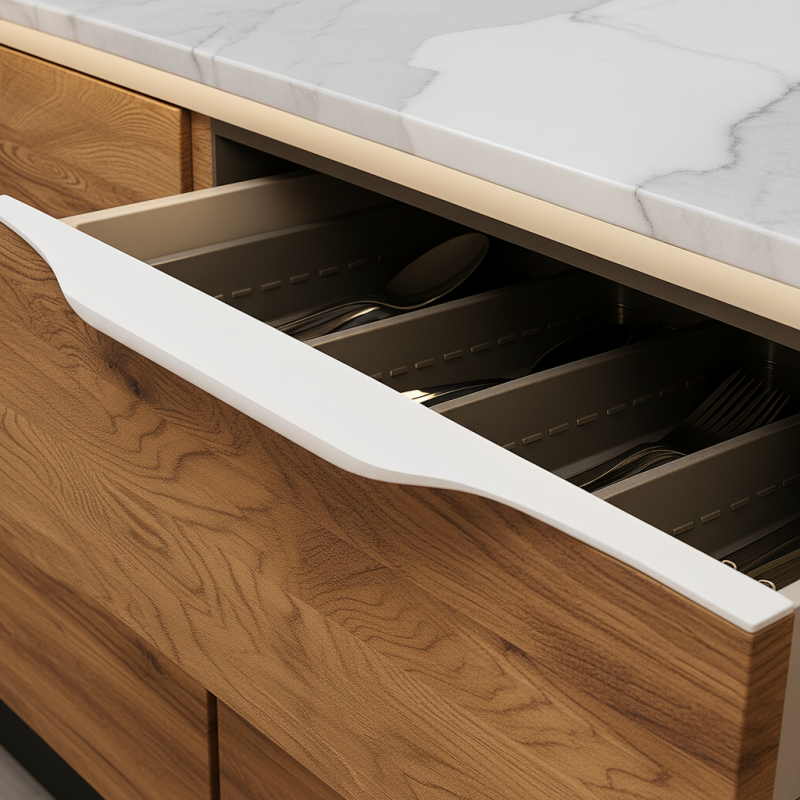 Elegantná zafrézovacia úchytka LUTRA v prevedení biela matná je ideálnym riešením pre moderné interiéry, kde dominujú čisté línie a minimalistický dizajn. Osádza sa priamo do hrany dvierok alebo zásuvky, takže vytvára jednoliaty vzhľad bez vyčnievajúcich úchytiek.