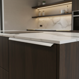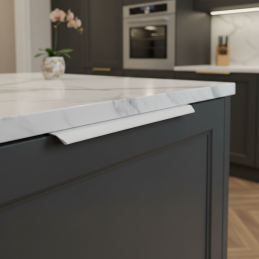 Moderná hranková úchytka MAURA v prevedení biela matná je ideálnym riešením pre čisté a minimalistické interiéry. Montáž na hornú hranu dvierok zabezpečuje elegantný, nenápadný vzhľad bez rušivých prvkov, pričom zachováva maximálnu funkčnosť.