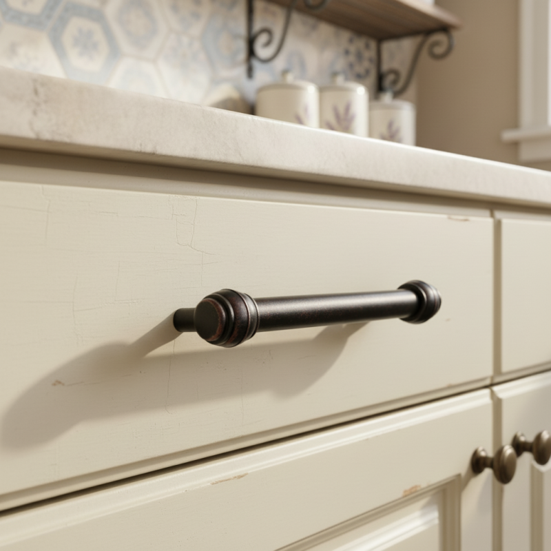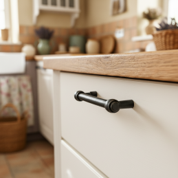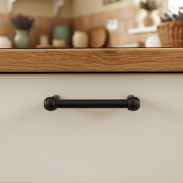 Úchytka RUSTICALE je elegantná kovová rukoväť s nostalgickým nádychom a robustným spracovaním, ideálna pre vidiecky, industriálny alebo vintage štýl interiéru. Jej valcovité telo so zaoblenými koncovkami pôsobí decentne, no zároveň dodáva nábytku osobitý charakter.