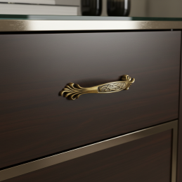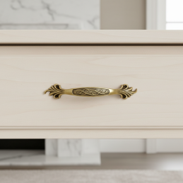 Elegantná nábytková úchytka KAMILA v prevedení staromosadz je štýlovým doplnkom pre klasický, rustikálny aj vintage nábytok. Ozdobné detaily a jemne patinovaný povrch dodávajú nábytku luxusný a nadčasový charakter.