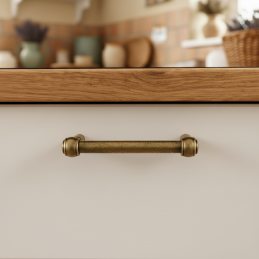 Úchytka RUSTICALE je elegantná kovová rukoväť s nostalgickým nádychom a robustným spracovaním, ideálna pre vidiecky, industriálny alebo vintage štýl interiéru. Jej valcovité telo so zaoblenými koncovkami pôsobí decentne, no zároveň dodáva nábytku osobitý charakter.