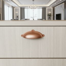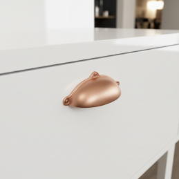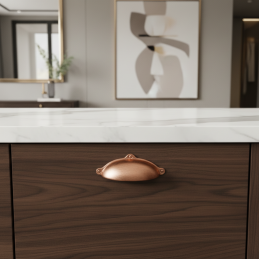Úchytka MELANIE v medenom odtieni je ideálnou voľbou pre tých, ktorí chcú svojmu nábytku dodať originálny a elegantný charakter so štýlovým nádychom vintage.