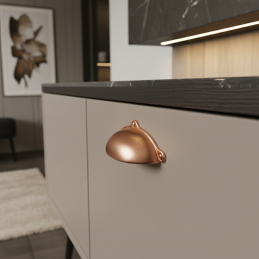 Úchytka MELANIE v elegantnom medenom prevedení je výnimočným dizajnovým doplnkom, ktorý dodá vášmu nábytku teplý, štýlový a nadčasový vzhľad. Oblý „miskový“ tvar úchytky zaručuje pohodlné uchopenie a zároveň prináša jemný retro nádych, ktorý sa v medenom odtieni mení na výrazný dekoratívny prvok.