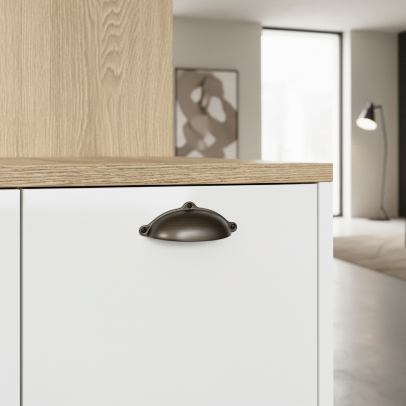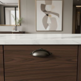 Úchytka MELANIE v titánovej povrchovej úprave predstavuje moderný, elegantný a univerzálny doplnok do interiéru. Jej ikonický „miskový“ tvar ponúka pohodlné uchopenie, zatiaľ čo titánový odtieň dodáva nábytku sofistikovaný, jemne metalický vzhľad. Tento farebný variant je mimoriadne obľúbený pre svoju schopnosť harmonicky ladiť s drevom, bielymi povrchmi či tmavými modernými dekorami.