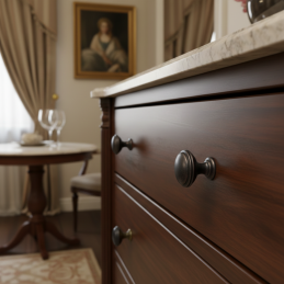 Klasická a elegantná knopka zo série ARLES v povrchovej úprave meď patina. Tento nadčasový dizajn je ideálny pre rustikálne, vidiecke aj retro interiéry. Dekoratívne tvarovanie a jemné línie dodajú nábytku výnimočný charakter. Masívne kovové prevedenie zaručuje dlhú životnosť a príjemné používanie.
