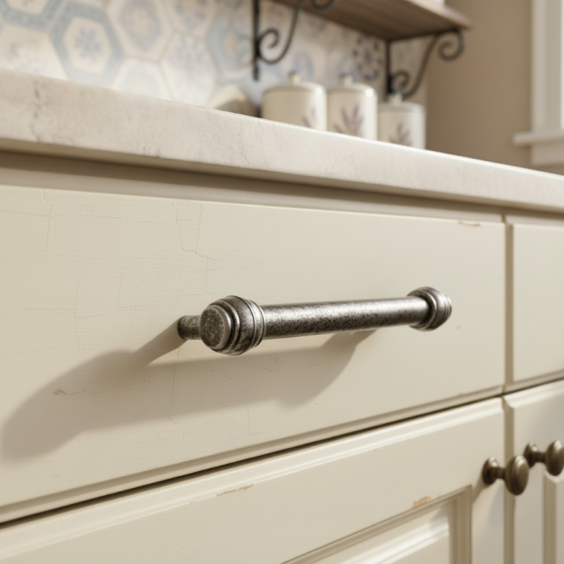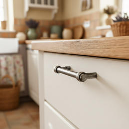 Úchytka RUSTICALE v povrchovej úprave starostrieborná prináša do interiéru nádych elegancie a noblesy s jemným vintage charakterom. Vďaka masívnemu kovovému telu a zaobleným koncovkám pôsobí výrazne, no zároveň decentne – ideálna pre klasické, industriálne aj vidiecke interiérové štýly.
