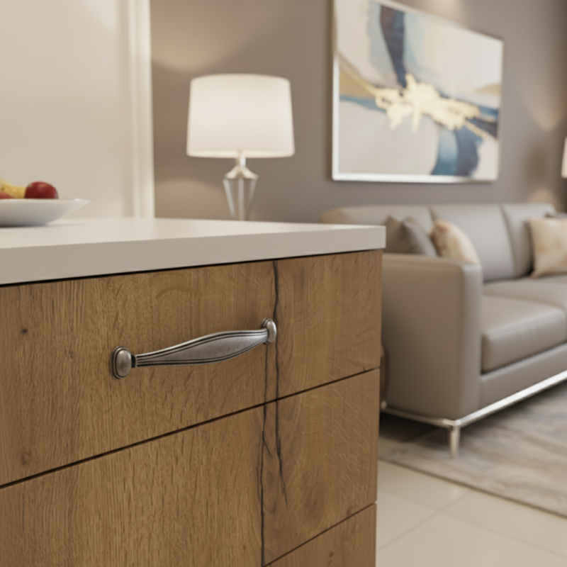 Elegantná úchytka v rustikálnom štýle vhodná pre skrinky, komody, kuchynské linky alebo iný nábytok, kde chcete zachovať klasický alebo vintage dizajn.