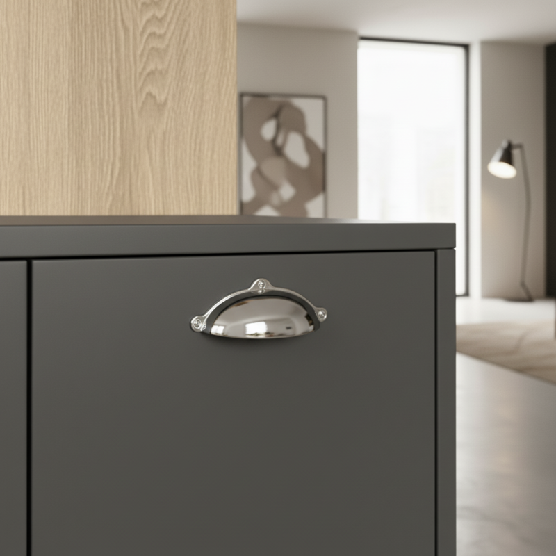 Úchytka MELANIE v lesklom chróme je moderným a zároveň elegantným doplnkom, ktorý dodá vášmu nábytku čistý, luxusný a nadčasový vzhľad. Oblý „miskový“ tvar úchytky zabezpečuje pohodlné a prirodzené uchopenie, zatiaľ čo vysoko lesklý chróm vytvára atraktívny zrkadlový efekt.