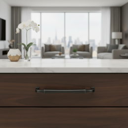 Úchytka NEUS v prevedení čierna patina spája tradičný tvar s moderným patinovaným povrchom, ktorý dodáva nábytku jedinečný remeselný charakter. Jemne prehnuté madlo a dekoratívne zakončenia vytvárajú elegantnú siluetu, ktorá sa výborne hodí do klasických, industriálnych aj rustikálnych interiérov.