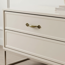 Dekoratívna úchytka CASANDRA v prevedení staromosadz je ideálnym doplnkom pre klasický, rustikálny či vintage nábytok. Jej elegantný tvar doplnený o ozdobné koncovky pripomína historické remeselné spracovanie a dodáva interiéru noblesný charakter. Skvele sa hodí na zásuvky, skrinky, komody aj vitríny.