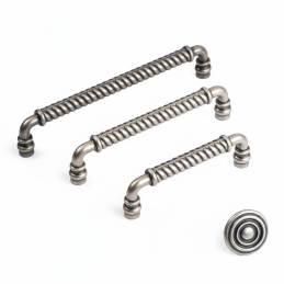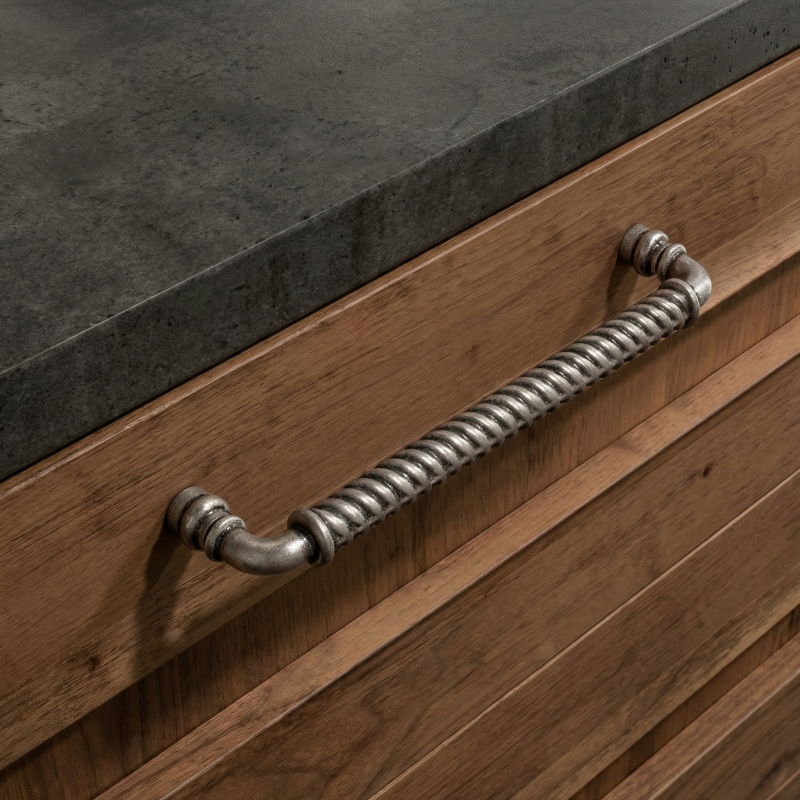 Rustikálna nábytková úchytka ROXOR v povrchovej úprave starostrieborná je výrazným dekoratívnym prvkom, ktorý dodá nábytku tradičný a elegantný charakter. Typické točené telo úchytky v kombinácii s patinovaným vzhľadom vytvára autentický rustikálny dojem, ideálny pre vidiecke, klasické alebo historicky ladené interiéry.