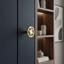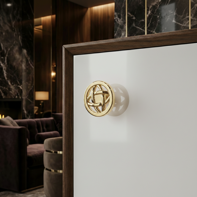 Elegantná knopka ALINA v lesklom zlatom prevedení zaujme svojím dekoratívnym prepletaným vzorom, ktorý pôsobí luxusne a nadčasovo. Je ideálnou voľbou pre klasické aj glamour interiéry, kde sa stane výrazným dizajnovým prvkom nábytku.