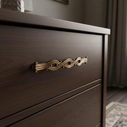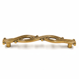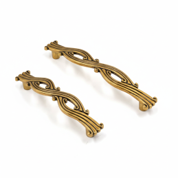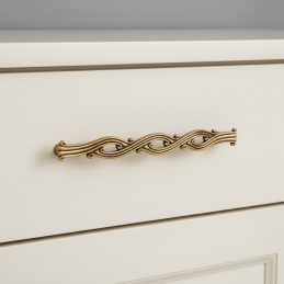 Elegantná rustikálna úchytka v prevedení staromosadz s dekoratívnym, jemne tvarovaným dizajnom. Vďaka výrazným líniám a patinovanému povrchu je ideálnou voľbou pre klasický, vintage aj provensálsky štýl nábytku.