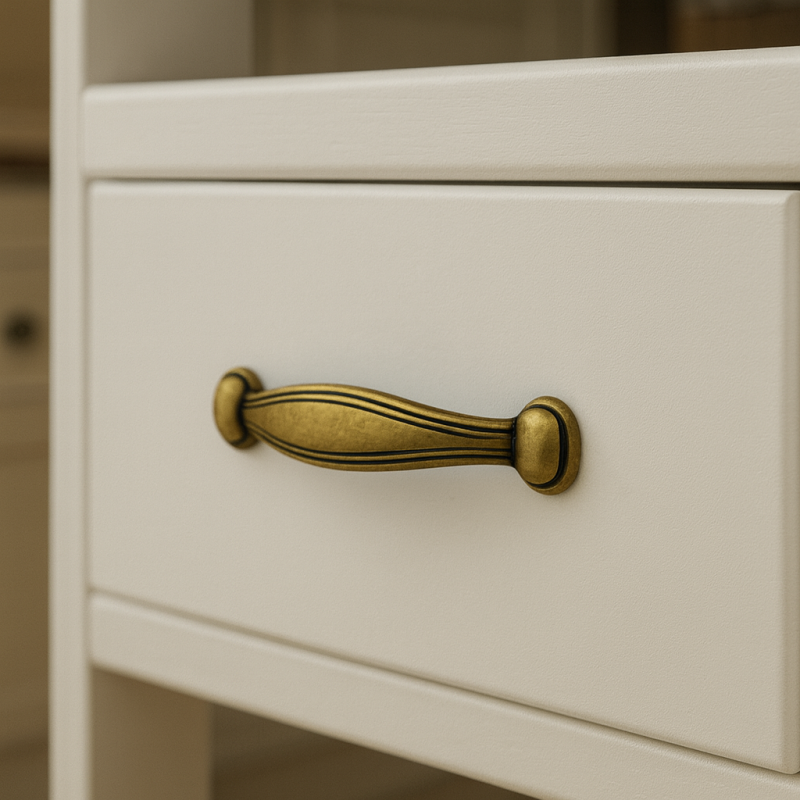 Elegantná úchytka v rustikálnom štýle vhodná pre skrinky, komody, kuchynské linky alebo iný nábytok, kde chcete zachovať klasický alebo vintage dizajn.