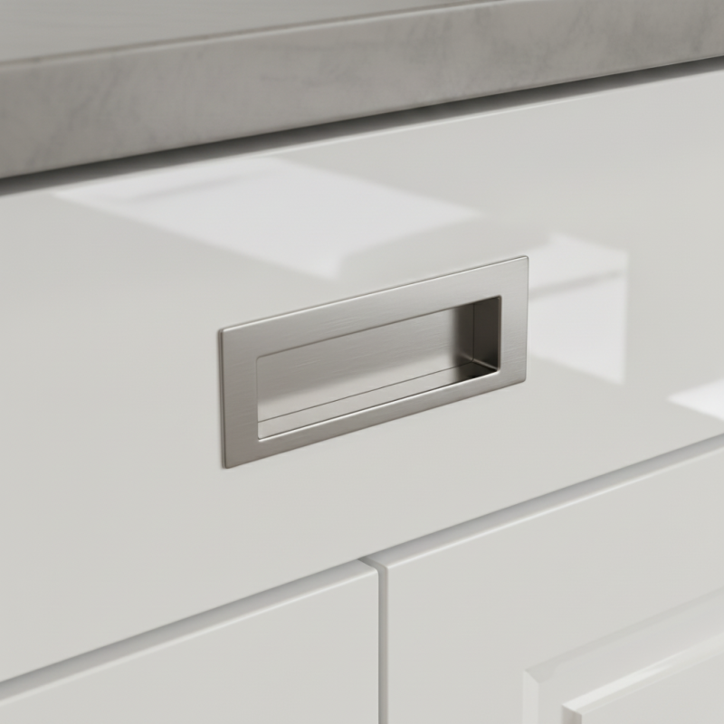 Elegantná minimalistická úchytka určená na zafrézovanie do plochy dvierok alebo zásuviek. Povrch v prevedení nikel brúsený pôsobí moderným, čistým a nadčasovým dojmom. Jemný saténový lesk dodáva nábytku sofistikovaný vzhľad a skvele ladí s drevom, svetlými aj tmavými dekormi.