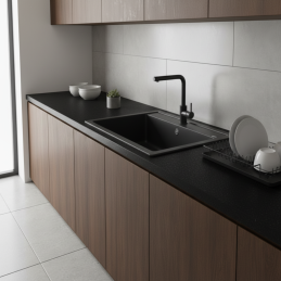 Pracovná doska U999 Čierna / ST78 od EGGER je ideálnou voľbou pre tých, ktorí vyhľadávajú čistý, moderný a minimalistický dizajn. Elegantná matná čierna farba s jemnou štruktúrou pôsobí luxusne a dokonale ladí s drevodekormi, betónom, kovom aj farebnými prvkami interiéru.
