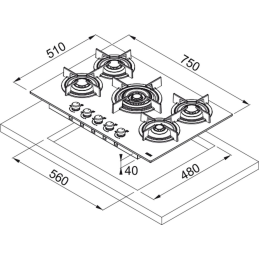 Päť plynových horákov rôznych veľkostí vrátane výkonného trojkorunkového horáka s výkonom 4 kW ponúka široké možnosti varenia – od jemného dusenia až po intenzívne varenie vo veľkých nádobách.