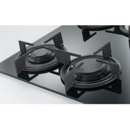 Kombinuje čierne tvrdené sklo s hrúbkou 8 mm a liatinové rošty, čím dodáva kuchyni profesionálny vzhľad a zároveň uľahčuje údržbu.