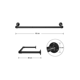 Tieto nástenné vešiaky, vyrobené z robustného kovového rámu v elegantnom čiernom matnom prevedení, dodajú vášmu interiéru nielen potrebný úložný priestor, ale aj štýlový industriálny vzhľad. S rozmerom 920 mm a vzdialenosťou 30 cm od steny poskytujú dostatok miesta na zavesenie takmer všetkých typov ramienok.