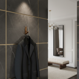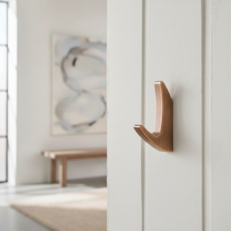 Vešiak KOS Mini v elegantnom mosadz brúsená prevedení pôsobí štýlovo, luxusne a dokonale zapadne do interiérov s teplejšími farebnými tónmi či retro prvkami. Brúsený povrch dodáva vešiaku jemnú textúru a vyššiu odolnosť voči každodennému používaniu.