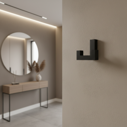 Elegantný a praktický vešiak v modernom dizajne s prednou montážou na podložku. Inštalácia je jednoduchá – podložka sa pripevní na stenu pomocou hmoždiniek a skrutiek (súčasť balenia), následne sa na ňu nasadí vešiak a zospodu sa zafixuje skrutkou.
