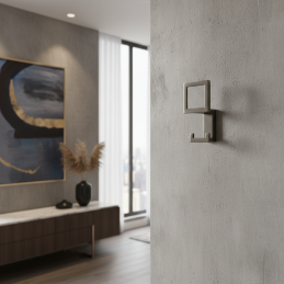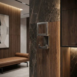 Vešiak je vyrobený z kvalitného kovu s brúsenou povrchovou úpravou v čiernej farbe, ktorá je odolná voči opotrebeniu a zároveň príjemná na dotyk.