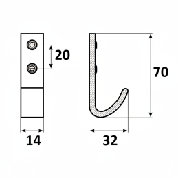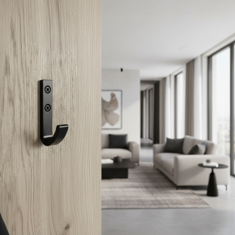 Vešiak je vyrobený z kvalitného kovu s odolnou matnou povrchovou úpravou, ktorá je príjemná na dotyk a zároveň odolná voči bežnému opotrebovaniu. Tvar háčika umožňuje bezpečné zavesenie oblečenia, kabeliek, batohov, uterákov či doplnkov bez ich poškodenia.