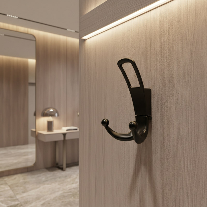 Vešiak LAMAR v čiernej matnej farbe je ideálnou voľbou pre zákazníkov, ktorí hľadajú spojenie moderného dizajnu, funkčnosti a odolnosti.