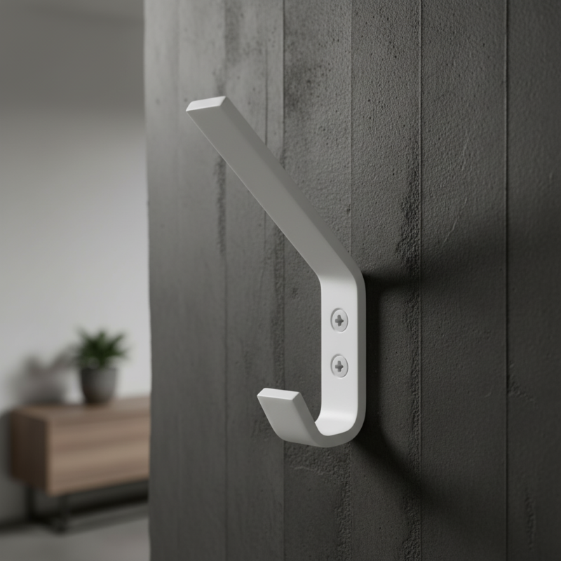 Dizajnový vešiak na stenu s montážou z predu pomocou skrutiek v identickej farbe ako vešiak