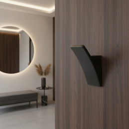 Dizajnový a multifunkčný vešiak, ktorý zároveň môže slúžiť aj ako nábytková úchytka – knopka. Vyznačuje sa moderným tvarom, kvalitným spracovaním a praktickou hĺbkou 35 mm, vďaka ktorej sa pohodlne používa.