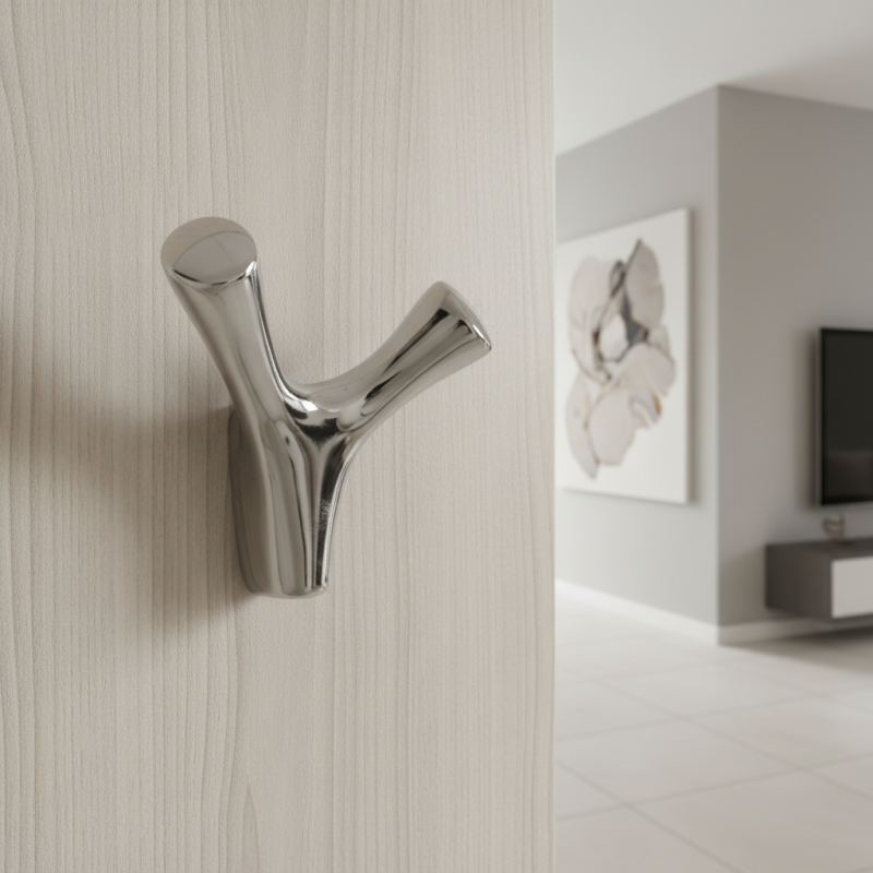 Lesklý chróm nádherne odráža svetlo, vďaka čomu je vešiak nielen funkčným prvkom, ale aj dizajnovým detailom vhodným do predsiení, kúpeľní, kancelárií či hotelových interiérov.