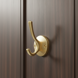 Elegantný vešiak ELIA v luxusnom prevedení zlatá matná je štýlovým a funkčným doplnkom do moderných aj klasických interiérov. Jemne zakrivený tvar háčika v kombinácii s okrúhlou rozetou vytvára nadčasový dizajn, ktorý pôsobí decentne, no zároveň prémiovo.