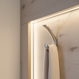 Moderný a elegantný vešiak MANAL v povrchovej úprave nerez je dizajnovým prvkom, ktorý do interiéru prináša čistý, technický a nadčasový vzhľad.