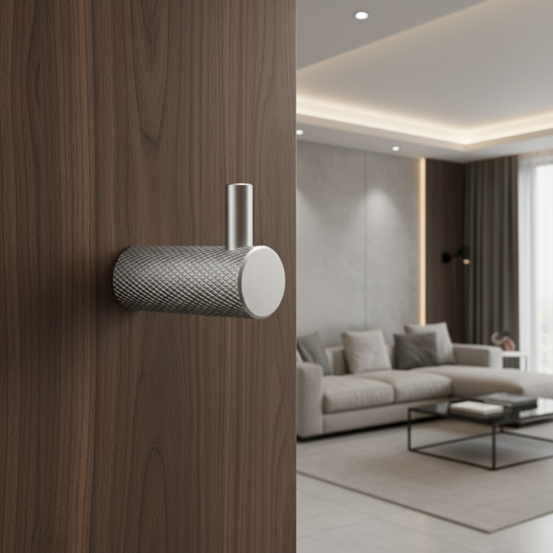 Vešiak INDUST UNO v povrchovej úprave ušľachtilá oceľ mat spája moderný industriálny dizajn s elegantným saténovým vzhľadom. Cylindrické kovové telo s výraznou ryhovanou (knurled) textúrou dodáva vešiaku technický charakter a zároveň zvyšuje odolnosť povrchu pri každodennom používaní.