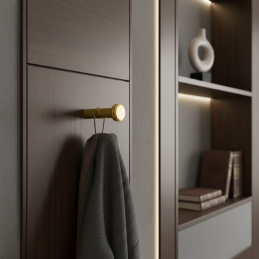 Vešiak NURIA v prevedení zlatá brúsená prináša do interiéru luxusný a nadčasový vzhľad. Jeho čistý valcový tvar doplnený jemným dekoratívnym prstencom pôsobí elegantne a harmonicky, vďaka čomu sa hodí do moderných kúpeľní, predsiení, šatní aj spální. Povrchová úprava v brúsenom zlate dodáva príjemný teplý odtieň a zároveň si zachováva vysokú odolnosť a jednoduchú údržbu.