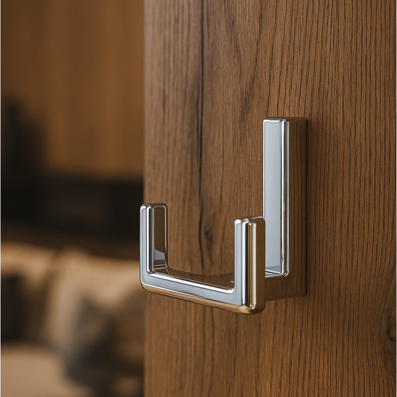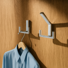 Vešiak je vybavený dvoma pevnými háčikmi, ktoré umožňujú zavesenie viacerých predmetov naraz – kabátov, búnd, kabeliek, kľúčov či uterákov.