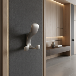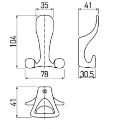 Vešiak je vybavený dvojitým háčikom, ktorý umožňuje pohodlné zavesenie kabátov, búnd, kabeliek či doplnkov. Je určený na montáž zpredu na podložku (stenu alebo nábytok), pričom upevňovacie skrutky sú prístupné z prednej strany a zabezpečujú jednoduchú inštaláciu.