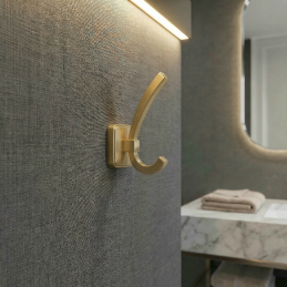 Elegantný nástenný vešiak EMILY je štýlovým doplnkom do kúpeľne, predsiene alebo šatníka. Brúsené zlaté prevedenie dodáva interiéru luxusný a moderný vzhľad, ktorý sa skvele hodí do klasických aj moderných priestorov.