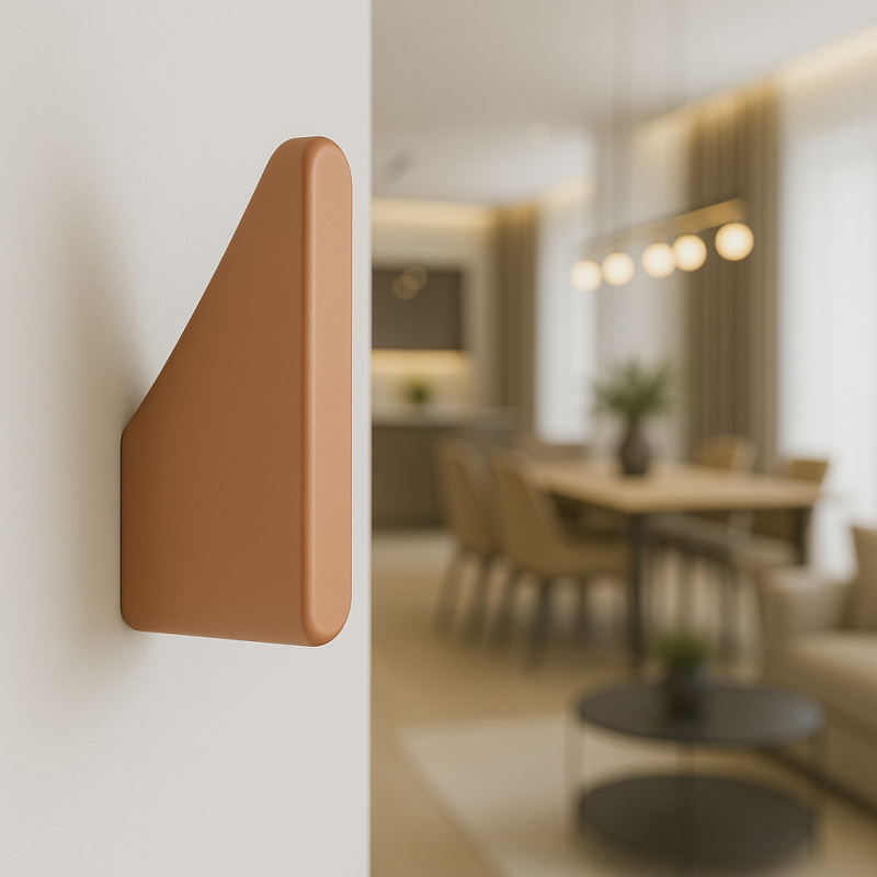 Minimalistický nástenný vešiak navrhnutý pre moderné interiéry a nábytok. Jeho čistý vzhľad bez viditeľných skrutiek z neho robí elegantné a praktické riešenie pre predsiene, kúpeľne, spálne či kancelárske priestory.