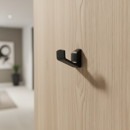 Vešiak v čiernej farbe , ktorý môže byť použitý aj ako úchytka - knopka