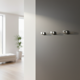 Vešiak sa montuje zo zadnej strany panelu alebo nábytku pomocou priloženej skrutky, čo zabezpečuje mimoriadne elegantný vzhľad bez viditeľných upevňovacích prvkov.