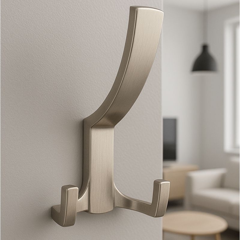 Trojháčiková konštrukcia – dva menšie háčiky dole pre tašky, doplnky alebo uteráky a jeden veľký horný hák na kabáty či ťažšie veci.