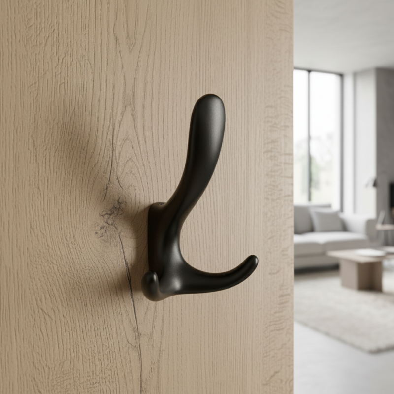 Jeho tvar umožňuje pohodlné zavesenie odevov, uterákov, kabeliek aj doplnkov, pričom pôsobí elegantne a esteticky čisto.