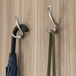Vďaka svojmu tvaru ponúka tri ramená na zavesenie oblečenia, uterákov, kabeliek alebo doplnkov, pričom si zachováva čistý a moderný vzhľad.