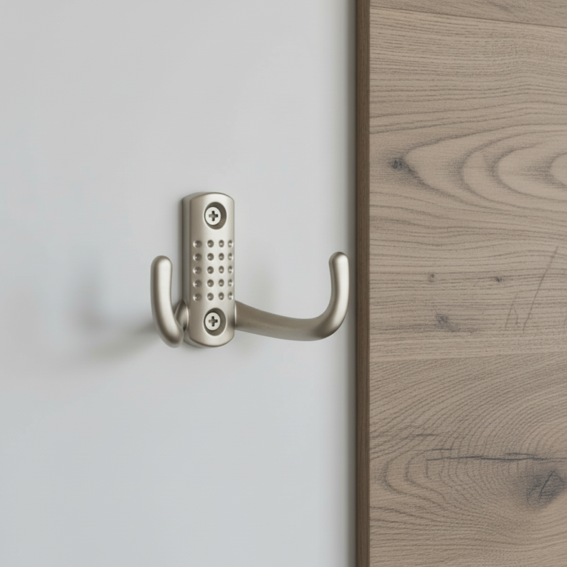 Moderný nábytkový vešiak s dvoma praktickými háčikmi, ideálny na každodenné odkladanie oblečenia či doplnkov. Saténový niklový povrch dodáva jemný, elegantný vzhľad a skvelo ladí s moderným aj klasickým nábytkom.