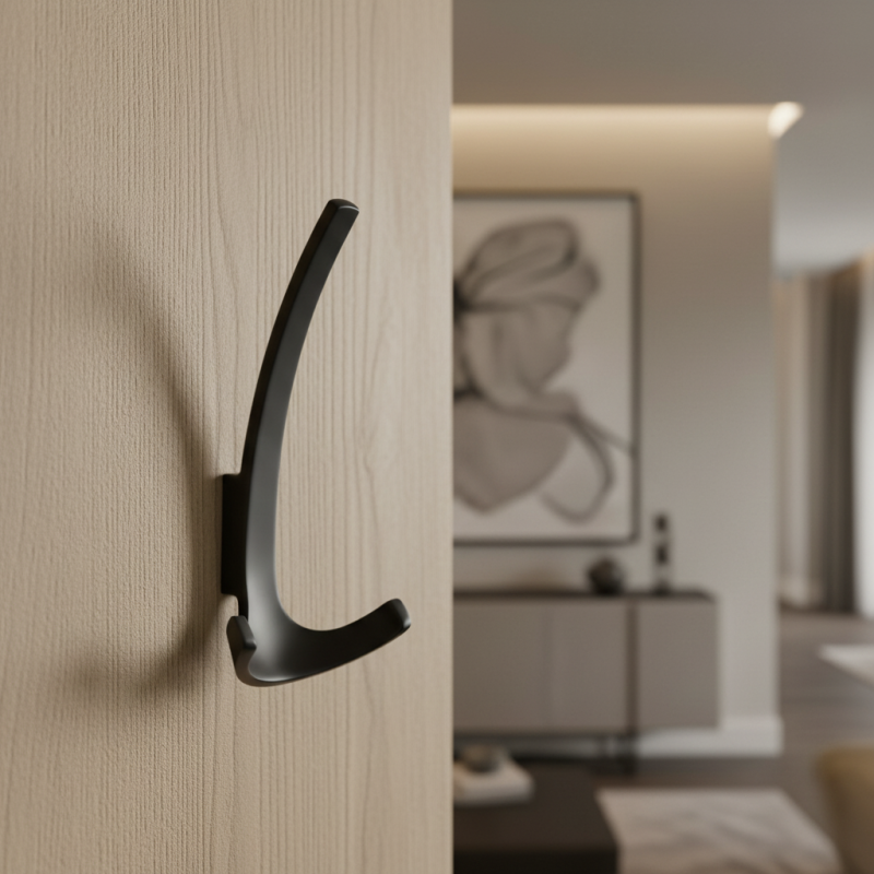 Elegantný kovový dvojvešiak vhodný do predsiene alebo do šatníka. Kombinuje moderný dizajn s praktickým využitím. Je ideálny na zavesenie búnd, kabátov, tašiek či doplnkov.