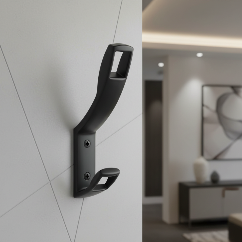 Dvojitý hák umožňuje pohodlné zavesenie kabátov, búnd, tašiek alebo doplnkov a je vhodný do predsiení, šatníkov, kúpeľní aj kancelárskych priestorov. Pevná kovová konštrukcia zabezpečuje spoľahlivosť a dlhú životnosť pri každodennom používaní.