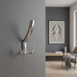 Lesklý chróm dodáva vešiaku čistý, reprezentatívny a nadčasový vzhľad, ktorý sa ľahko kombinuje s modernými aj klasickými interiérovými prvkami.